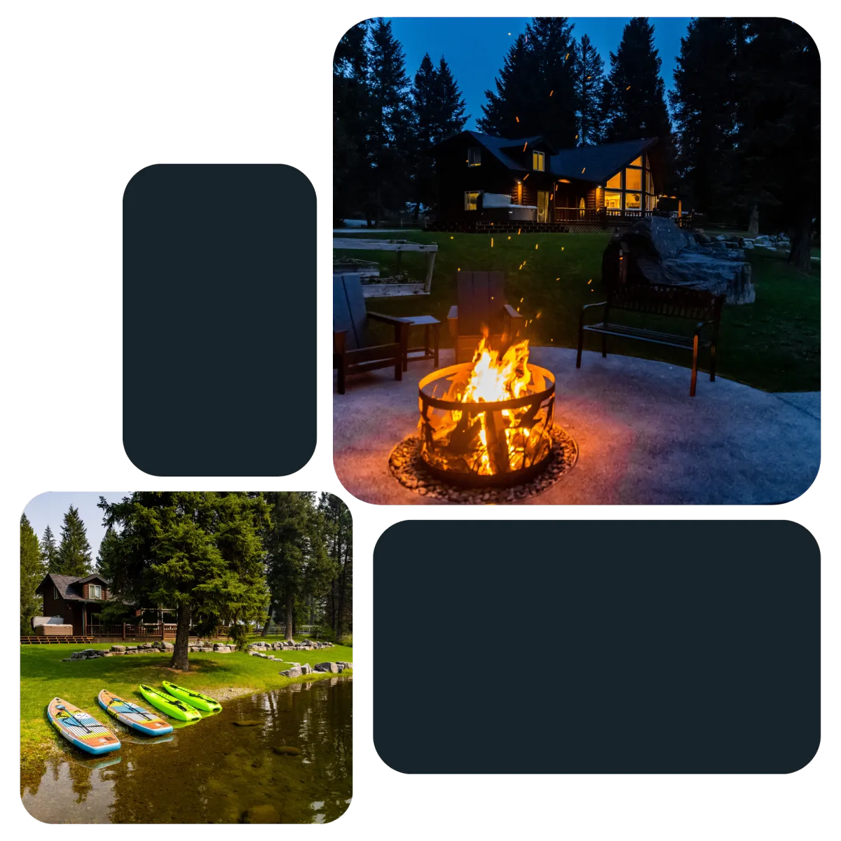 Gather around the fire pit for riverside bonfires and create cherished memories under the starry Montana sky